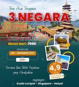 Perjalanan seru ke Malaysia, Singapura, dan Thailand! Mulai dari Kuala Lumpur, Genting Highland, dan Batu Caves, lalu lanjut ke Singapura dan Melaka. Akhiri dengan tur Hatyai di Thailand sebelum kembali ke Kuala Lumpur.
